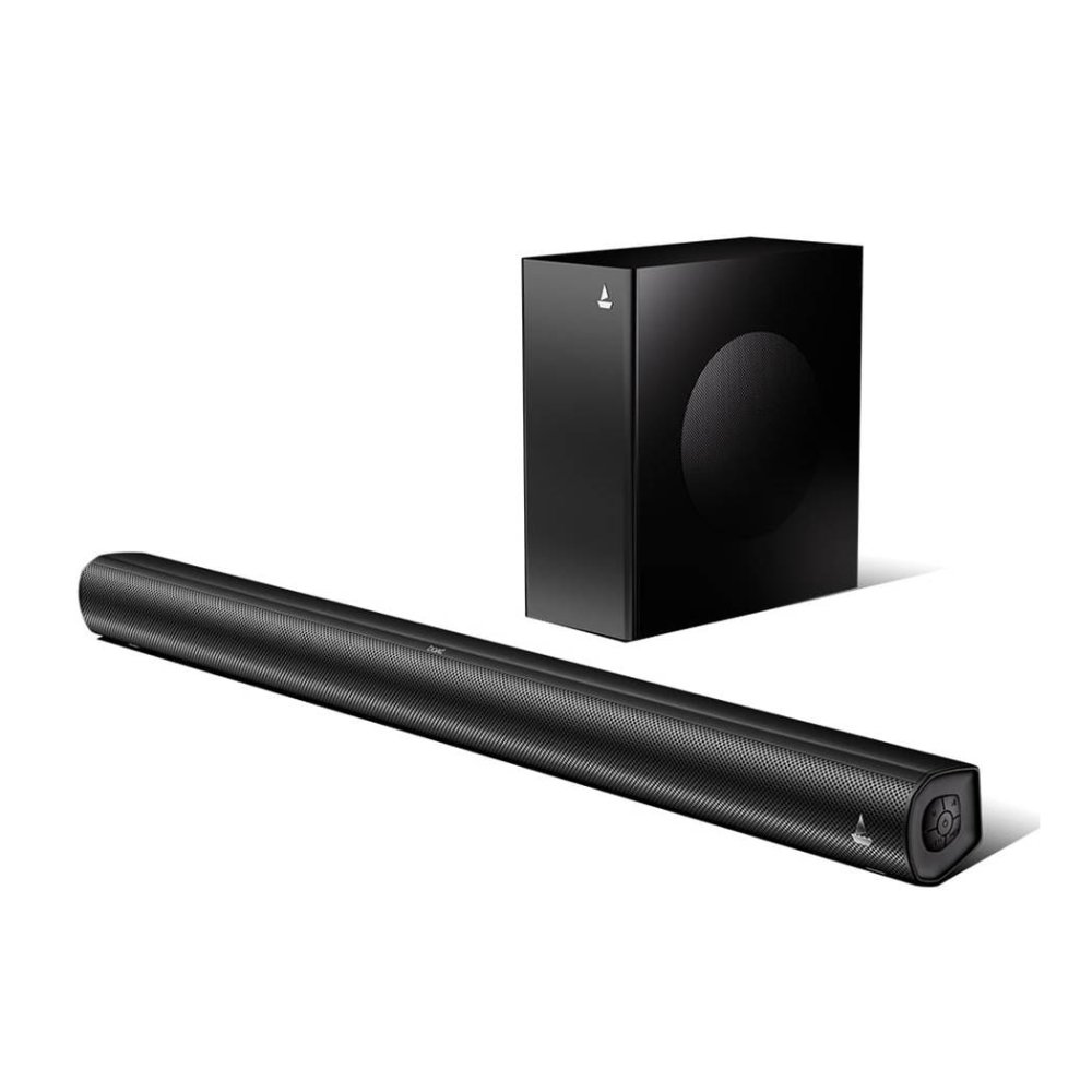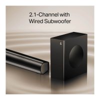2.1CH w/ Wired Subwoofer : With a 2.1-channel sound and wired subwoofer, this soundbar’s audio is bound to fill every corner of the room. So, you can dive into the audio output from wherever you are sitting.