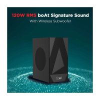 120W RMS Soundbar For A Powerful, Thumping Experience - Powerful yet polished. The 120 Watt RMS boAt Aavante Bar with a wireless subwoofer means more power hence stronger bass, louder sound and a more dynamic experience. It gives you an audio experience unlike any other that you lose yourself in the experience.