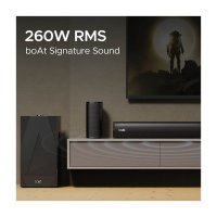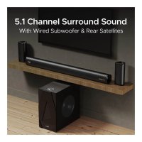 Audio Power & Channel : 260W RMS total output with a 5.1 channel configuration, featuring a dedicated wired subwoofer for deep bass. |